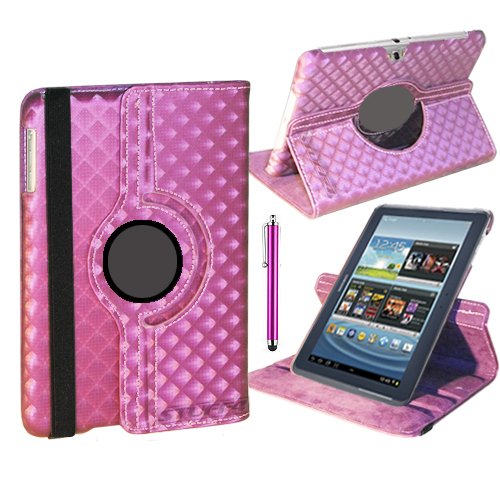 Détails sur le produit Stuff4 MR-GT210.1-L360-PAT-DMND-PK-STY-SP Housse avec rotation à 360° pour Samsung Galaxy Tab 2 10,1" (P5100 / P5110) Film de protection et Stylet inclus Rose Clair Diamant